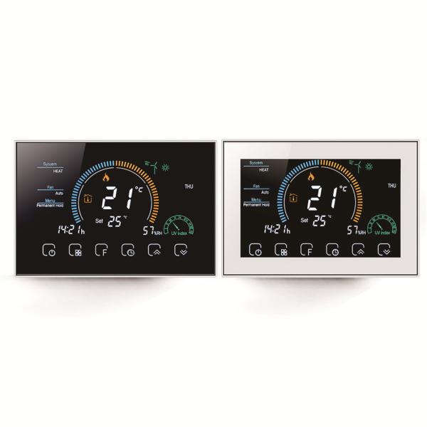 Four-tube Wi-Fi Voice Smart Room Digital Heating and Cooling LCD Touch Screen Air Conditioning Thermostat(BAC-8000ELW(Four tubes)White black brushed)